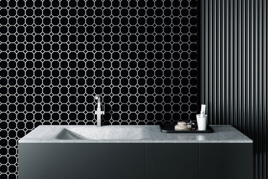 Octagonal Matt Black and Gloss Dot 297x297mm