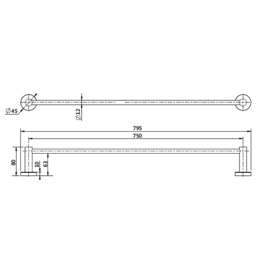 Mirage Single Towel Rail 750mm Brushed Nickel
