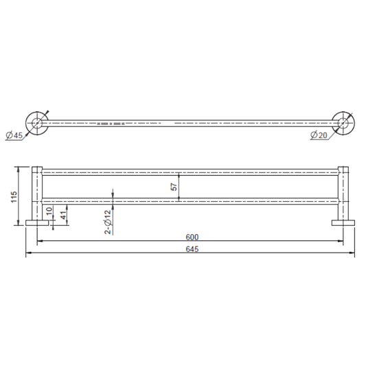 Mirage Single Towel Rail 600mm Brushed Nickel