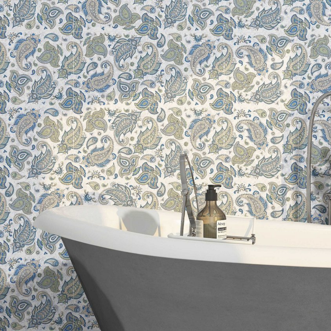 The Boteh collection is a feature packed wall and floor tile. These intricate paisley influenced designs can easily transform a space into a mesmerizing oasis. The beauty of these tiles lies in their intricate patterns and meticulous detailing, each one carefully crafted to create a stunning masterpiece.