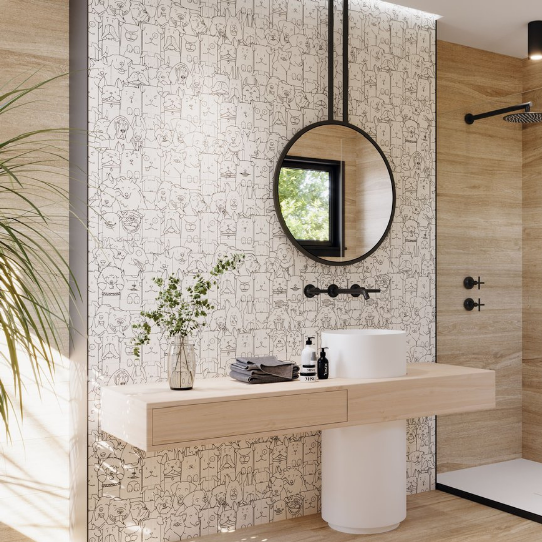 Introducing the Deco Dog Squad collection! This line art tile from our Deco range is perfect for creating a bold and unique style. With a chic modern design and 13 different faces, each tile seamlessly connects to the next for a striking display.