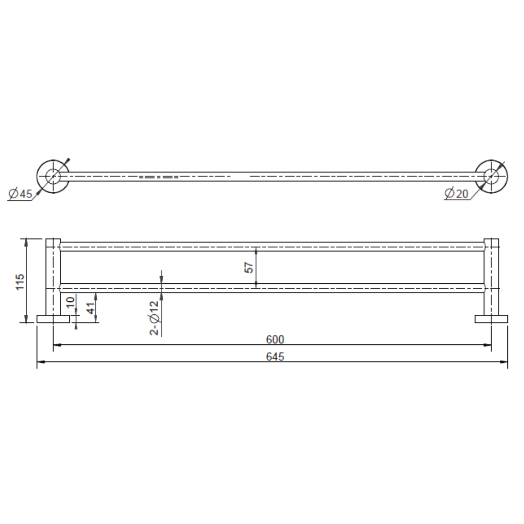 Mirage Double Towel Rail 600mm Brushed Bronze