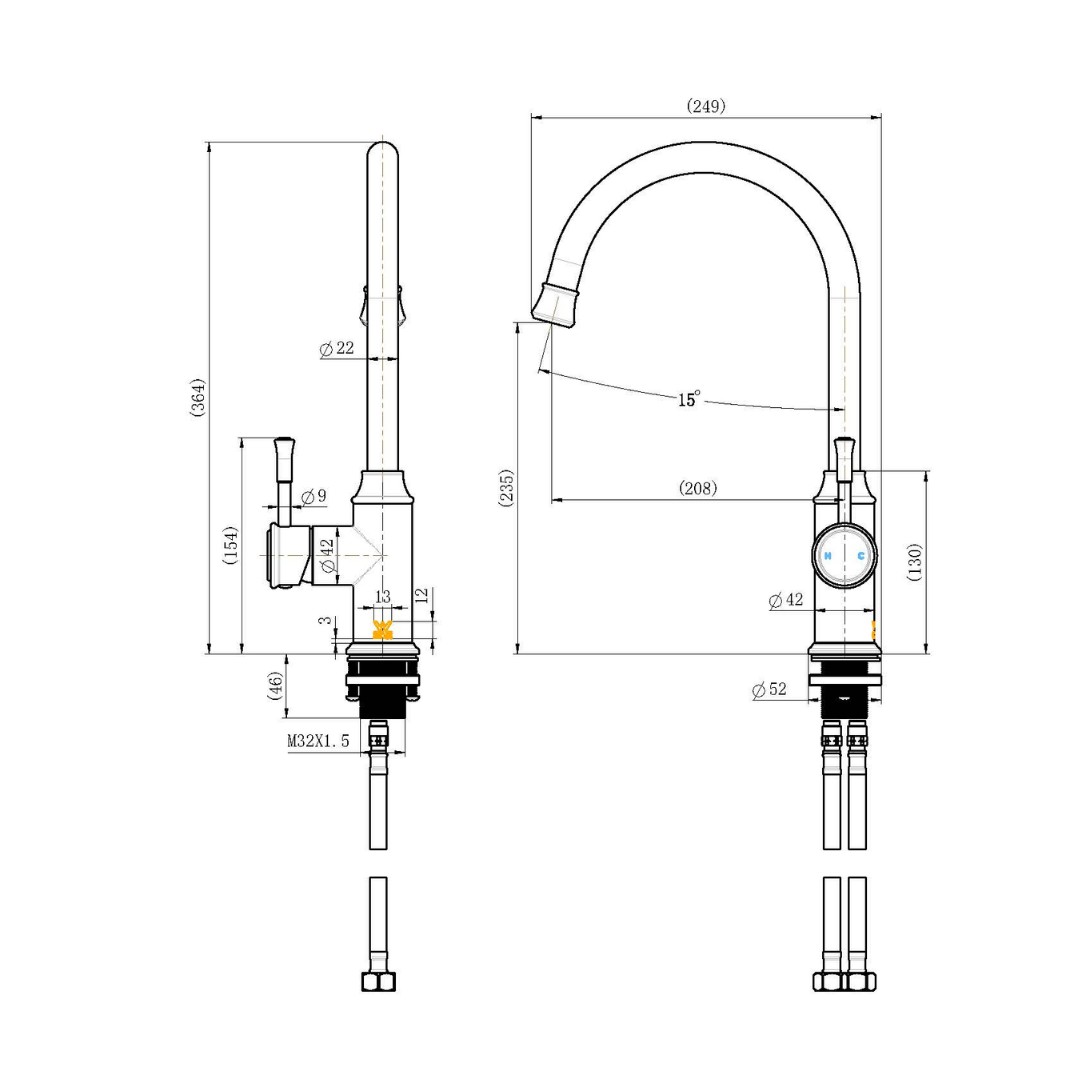 - Brushed Bronze & Matt Black: Durable PVD finish